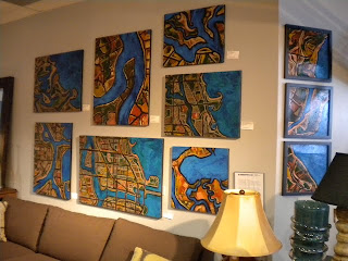 This series of paintings explores the colors and shapes of landscapes and waterways from above. They are based on images from Google maps as well as photographs I've taken from an airplane while traveling. They were painted mostly lying flat on a table so that I worked above the canvas as I painted them.