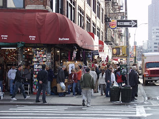 Soho, Chinatown, Little Italy, and Wall St. are nearby and the vibrancy of those neighborhoods all spill out onto Canal Street - people working, shopping, running errands, or getting a bite to eat. I like the mailman talking on his cell phone in the top image and the woman looking for something in her purse in the bottom photo.