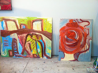 Here's a sneak peek of some new paintings that I'm still working on but should be done for next week's open studio event. Still wet and the unique smell of oil paint wafts through the studio...