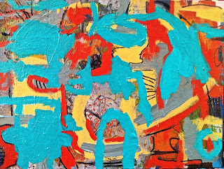 This has been a month of abstract experiments and trying out new ideas for paintings. For the last few weeks I've been working and re-working the below paintings. I've been using different techniques such as masking, screen printing, drawing with paint markers and conte crayons to build up the many layers.