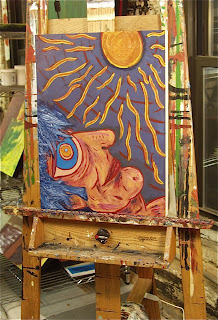 I'm tired of winter and I intentionally used bright colors and sunny subject matter in this painting. Looking at it some more, it's not quite done. I have some touching-up to do and will probably add some more color to give stronger dimension to the hair. I'll decide once I get back in the studio later this week...