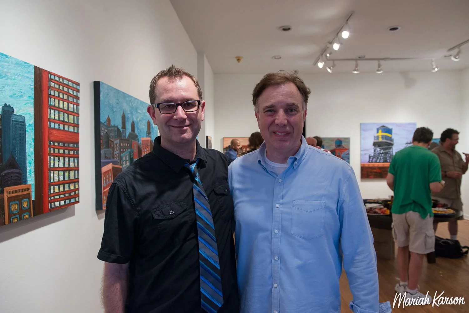 In 2015, I had my first official solo gallery show in Chicago: This Must Be The Place – Cityscapes by Kevin Swallow. July 24 – August 22, 2015 at Firecat Projects in Bucktown. The show was comprised of cityscape paintings featuring elevated train tracks, steel bridges, industrial era buildings, and the rooftop water tanks that dot the skyline. “Rooftop water tanks are a unique architectural element in our cities – especially in Chicago and New York. They are a link to our industrial past and a disappearing element of the skyline. Because these structures are vanishing, I photograph them and then make paintings based on those images.”